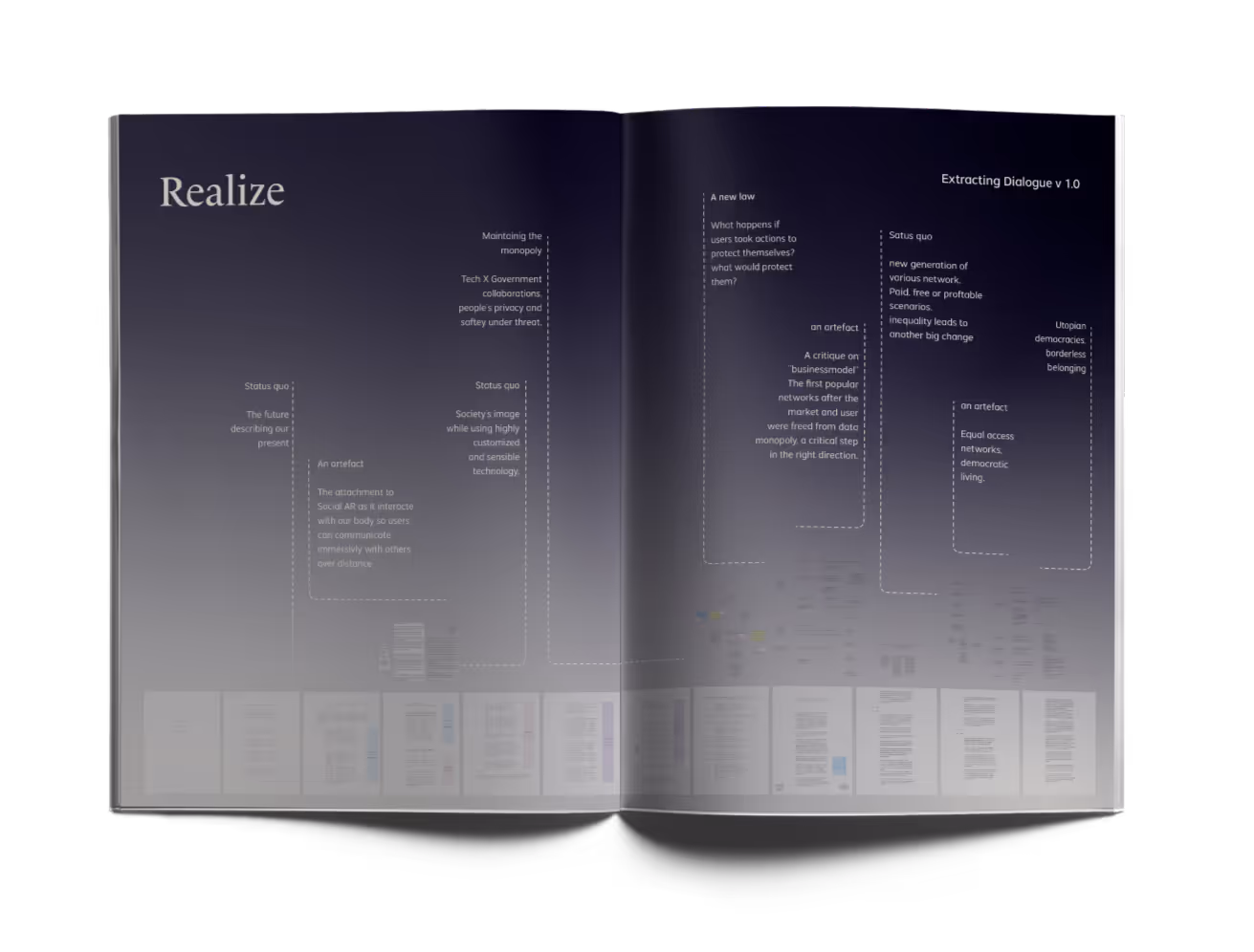 Using Speculative Design, I explored a "speculative timeline" with artifacts from 2030, 2035, and 2045, narrating various User-Platform dynamics along the evolution of communication technologies and fundamental policies.